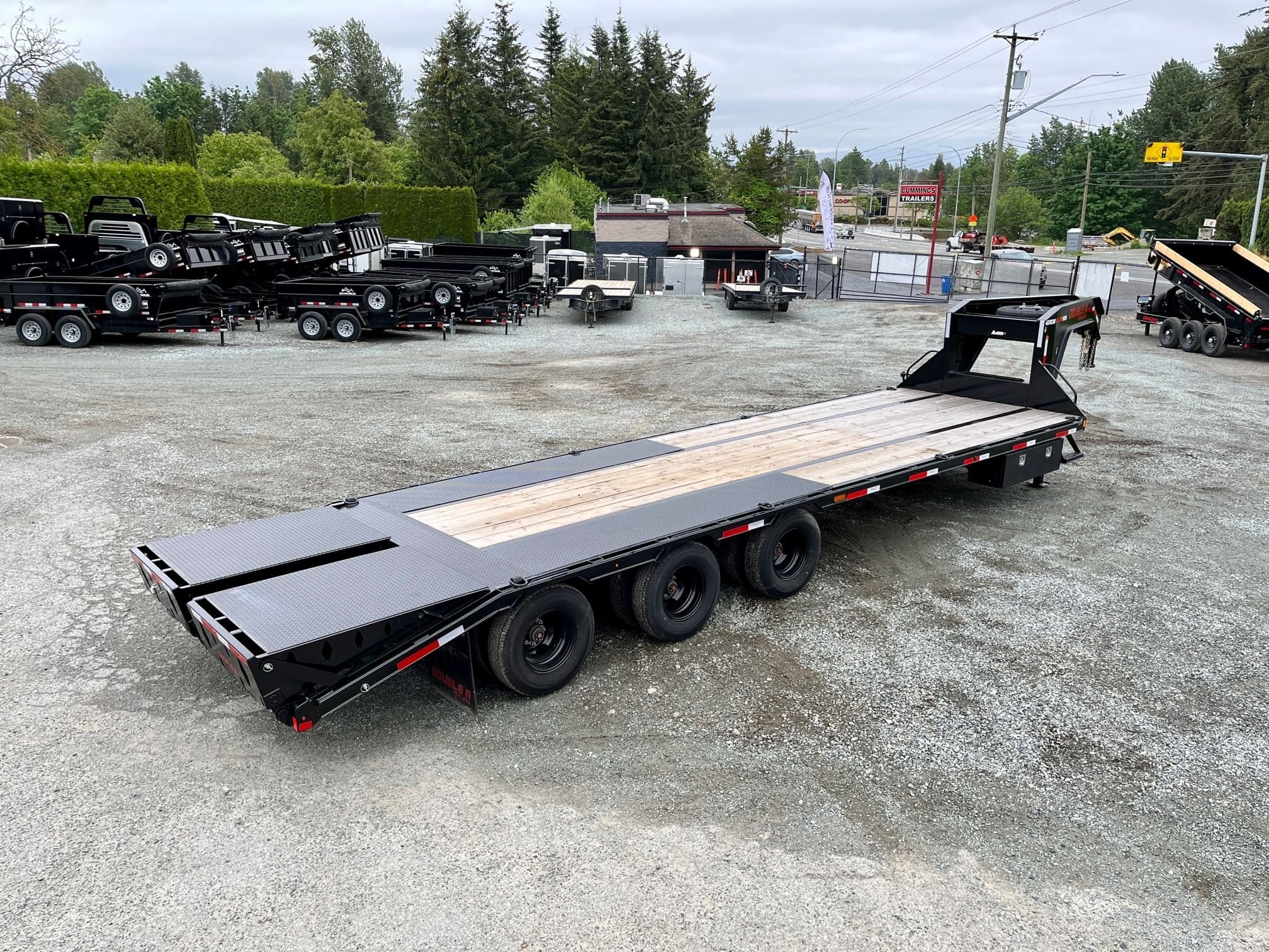 30′ Tri-Axle deck-over trailer for sale is designed for heavy-duty hauling, with a strong frame, try-axle setup, and reliable performance for equipment and large loads.