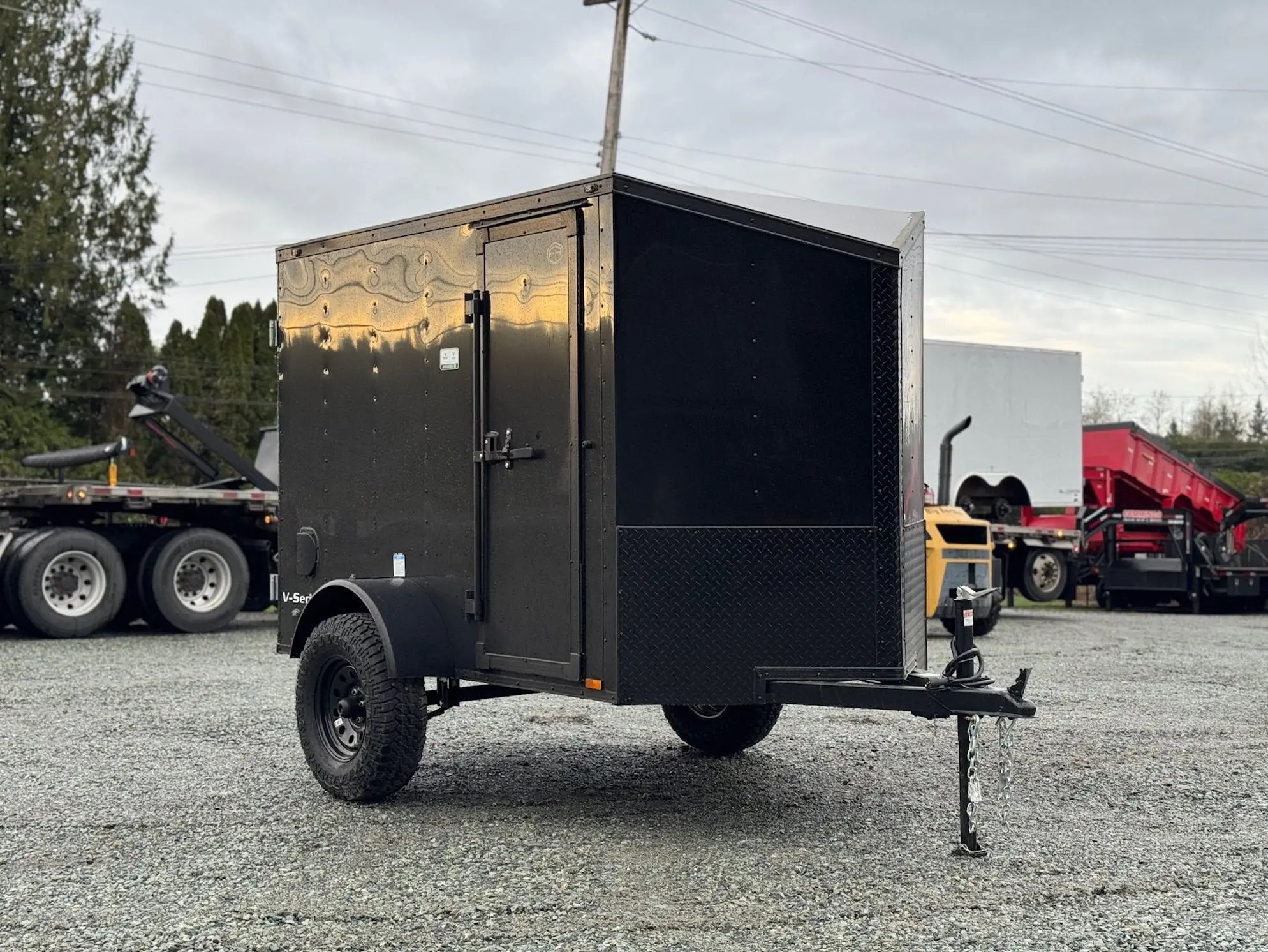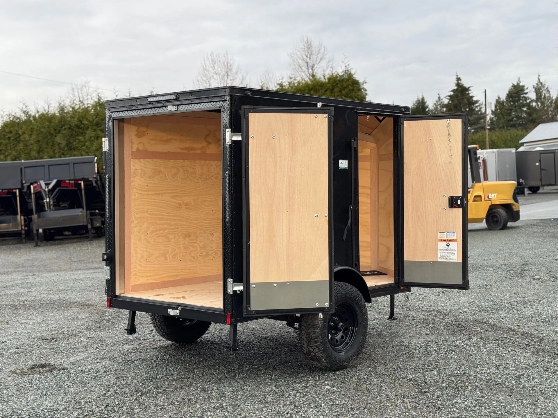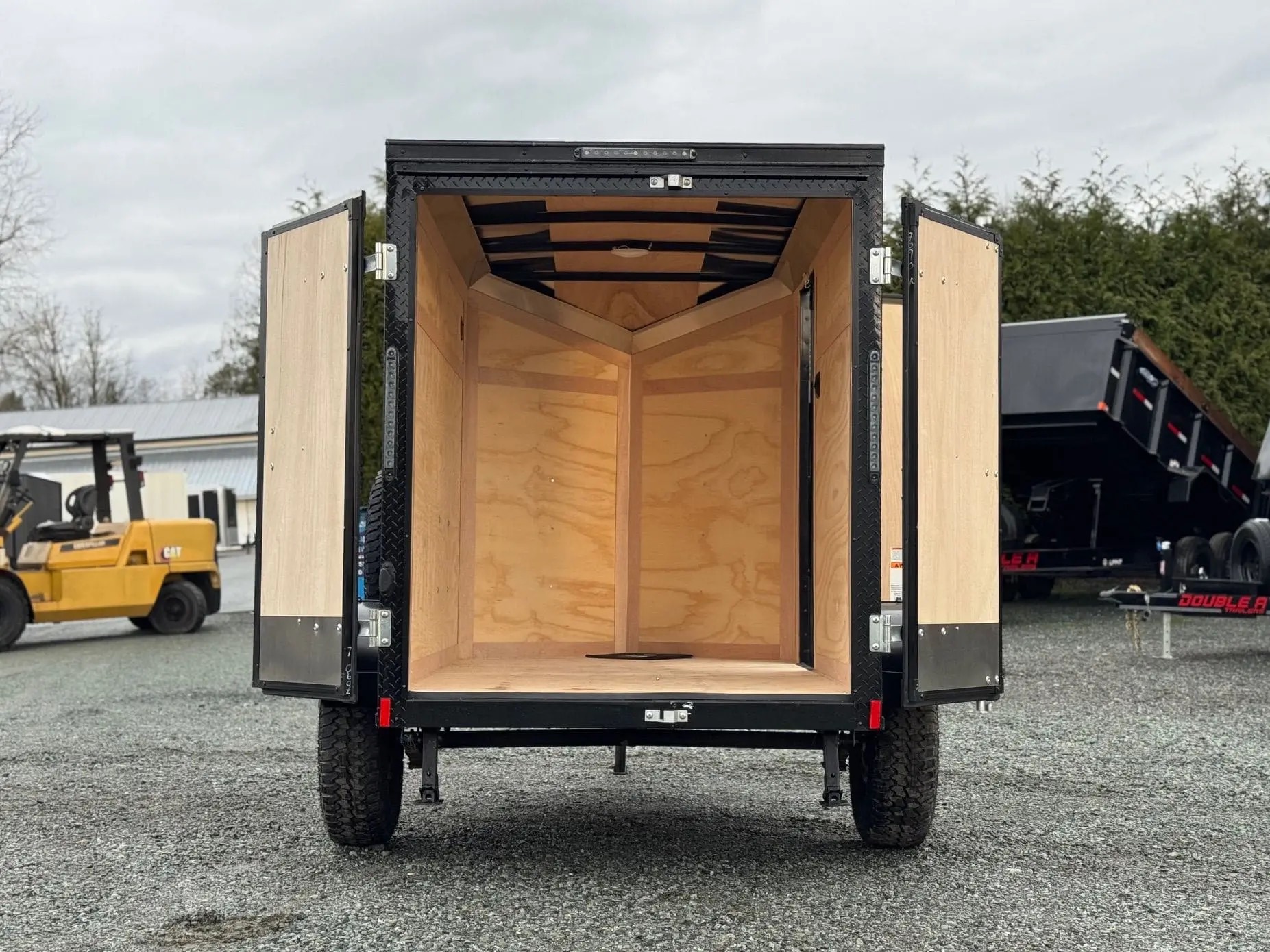 This 5×8 Enclosed cargo trailer for sale with barn doors and electric brakes. Extra height provides more loading space and the enclosed design keeps cargo secure and protected.