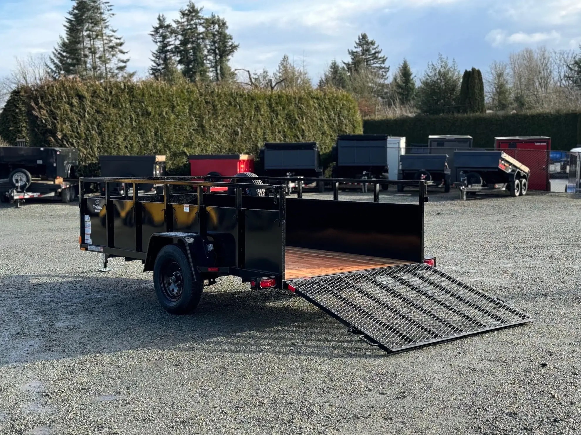 This 6×12 single axle utility trailer for sale with durable construction has reliable performance for landscaping , hauling ,and everyday transport.
